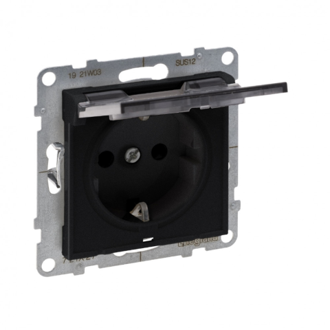 1 kép LEGRAND 721427 Suno 2P+F dugalj csatlakozóaljzat (rugós), biztonsági zsaluval, csapófedéllel IP21, fekete