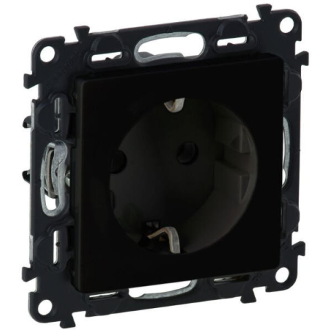 1 kép LEGRAND 756321 Valena Life 2P+F dugalj csatlakozóaljzat mechanizmus burkolattal, rugós vezetékbekötéssel, fekete