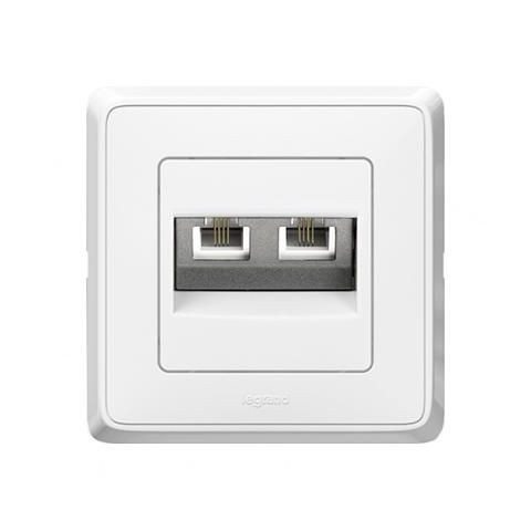Cariva 773639 fehér 2xRJ11 telefon csatlakozóaljzat keret nélkül Legrand Cariva telefoncsatlakozó 2xRJ11 keret nélkül fehér