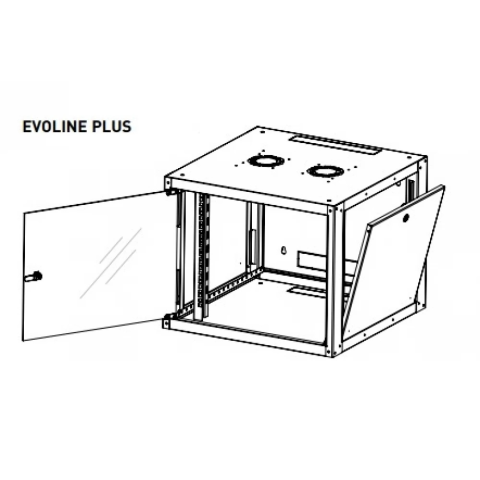 Evoline+ 19" 16U 600x600mm levehető oldallapos üvegajtós egyrészes fali rack szekrény.