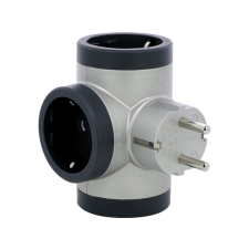 Kompakt 2P+F elosztódugó biztonsági zsaluval - 3 oldalsó kimenettel Schuko szabvány.
