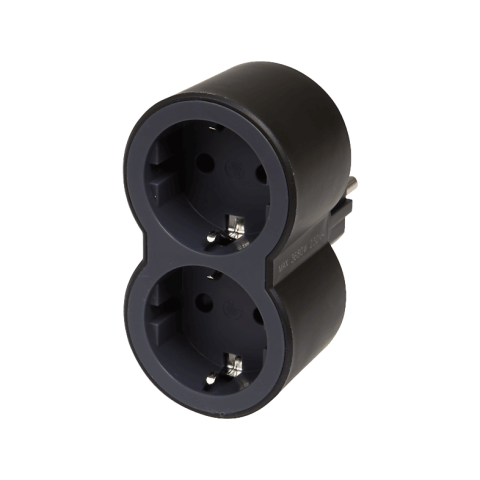 2P+F elosztódugók biztonsági zsaluval, 2 kimenettel fordított bemélyedésekkel, hogy megkönnyítse a készülékek csatlakoztatását.