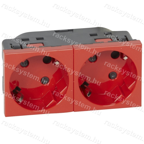 1 kép LEGRAND Legrand 077281 Program Mosaic 2x2P+F aljzat reteszelt, sínezett, rugós, piros