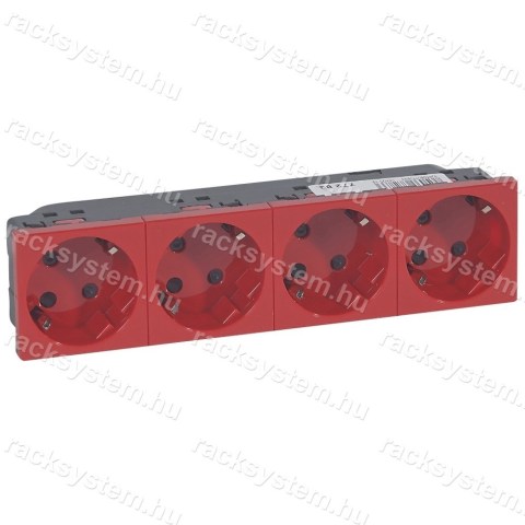 1 kép LEGRAND Legrand 077283 Program Mosaic 4x2P+F aljzat reteszelt, sínezett, rugós, piros