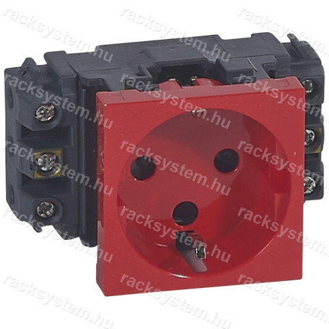 1 kép LEGRAND Legrand 077621 Program Mosaic 1x2P+F DLP aljzat reteszelt, sínezett, csavaros, piros