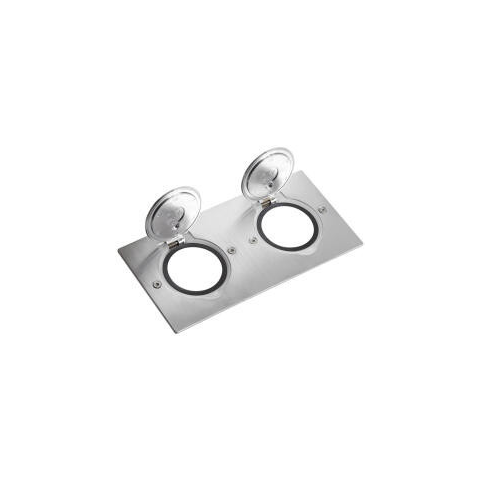 Leg.089702 Mini padlódoboz téglalap üres,2x2mod,rozsdamentes acél \nMini téglalap alakú padlódoboz csatlakozóaljzathoz, rozsdamentes acél