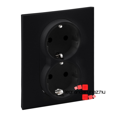 1 kép LEGRAND Suno 2x2P+F csatlakozóaljzat biztonsági zsaluval, egybeépített burkolattal, rugós fekete, Legrand 721426