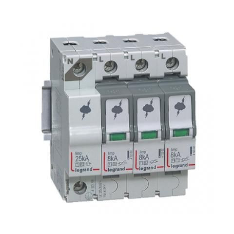 Túlfeszültség-levezető dugaszolható kombi 4P T1+T2 T2 TNC TN-S TT 400V/AC 50kA 4M imax LEGRAND