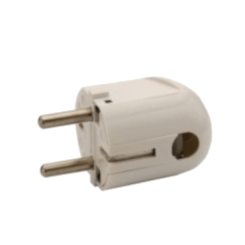 Újravezetékezhető 2p-f csatlakozó, dugó oldalsó vezetékbekötéssel, fehér színben.