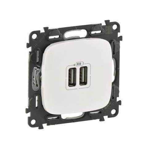 Valena Allure 754995 kettős USB töltőaljzat, burkolattal fehér Legrand \nValena Allure Kettős USB töltőaljzat, burkolattal, Fehér