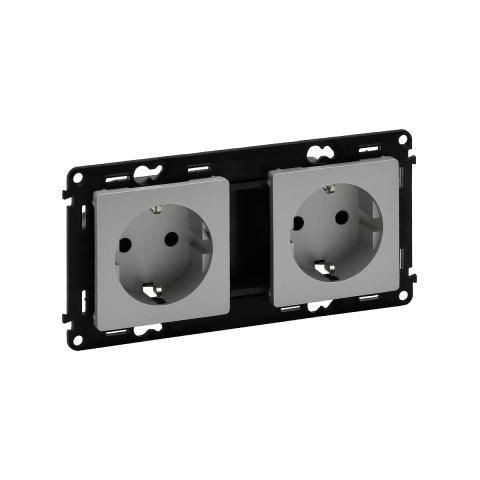 Valena Life 753322 2x2P+F sínezett (GYV) biztonsági zsalus aljzat, rugós alumínium Legrand