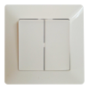 A 2 billentyűből álló kapcsoló 2 fogyasztó 2 helyről történő kapcsolására, illetve 2 különálló helyiség 1 helyről történő fel- és lekapcsolására alkalmas.