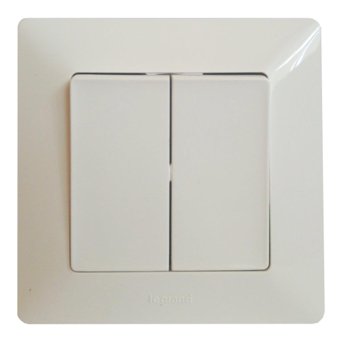 A 2 billentyűből álló kapcsoló 2 fogyasztó 2 helyről történő kapcsolására, illetve 2 különálló helyiség 1 helyről történő fel- és lekapcsolására alkalmas.