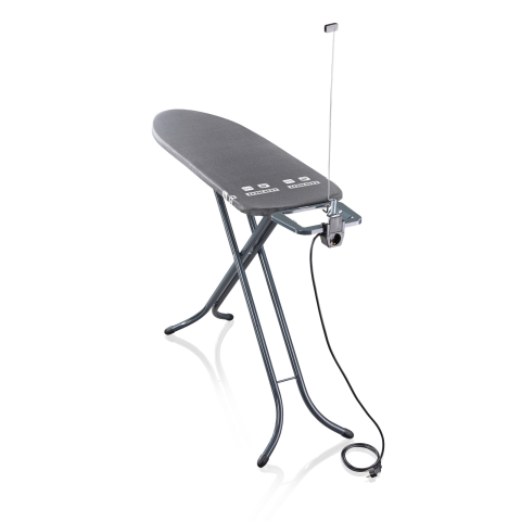 Vasalófelület 120 x 38 cm Speciális szintetikus anyagokból készült vasalófelület Pamutborítás Thermo-reflex technológia - 33%-kal gyorsabb és könnyebb vasalás Magassága 98 cm-ig állítható Kábelvezető antennával Aljzattal és hosszabbító kábellel Ultrakönn
