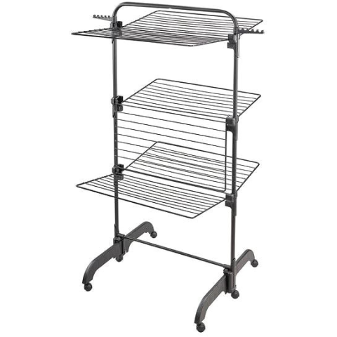 Ruhaszárító - beltéri, álló, összecsukható és emeletes, szabadon álló, 3 emeletes, teljes szárítási hossz 4,2 m, vállfa tartó és kerekek a csomag része, anyaga fém, mérete kinyitva 145 × 96 × 70 cm (Ma×Sz×Mé), mérete összehajtva 145 × 76,5 × 7 cm (Ma×Sz×Mé), tömege 6,18 kg LEIFHEIT Comfort Tower 420 BLACK - Kompromisszumok nélküli ruhaszárításA LEIFHEIT Comfort Tower 420 ruhaszárító maximális szárítási helyet kínál, miközben minimális helyet fogla