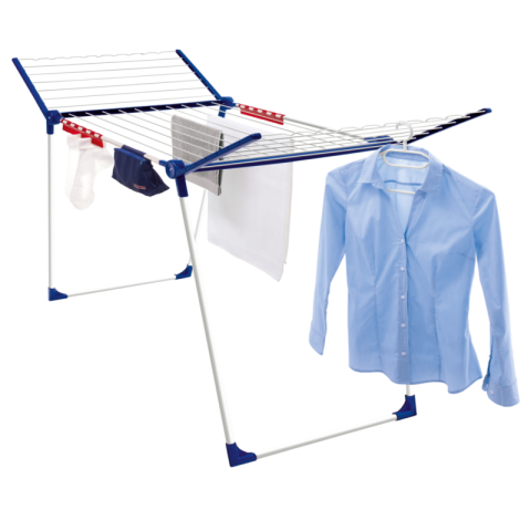Leifheit pillangó ruhaszárító- mérete: 87x167x66 cm- szárító felülete: 20m- csipesztartó, 5db vállfa, 2db zokni/fehérneműtartó