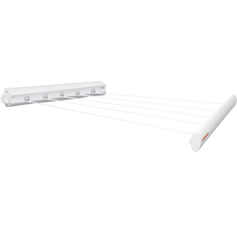 Ruhaszárító - beltéri, fali, automata behúzós és kihúzható, felfúrható, 1 emeletes, 5 zsinór/rúd, teljes szárítási hossz 21 m, biztonsági zár a csomag része, anyaga műanyag, mérete kinyitva 8 × 48 cm (Ma×Mé),, tömege 0,8 kg A lakásokban gyakran problémát jelent, hogy hol szárítsuk meg a ruhákat. A hely általában szűkös, ezért a helytakarékos Leifheit Rollfix 210 Longline 83040 kihúzható falra szerelhető ruhaszárító jó sz