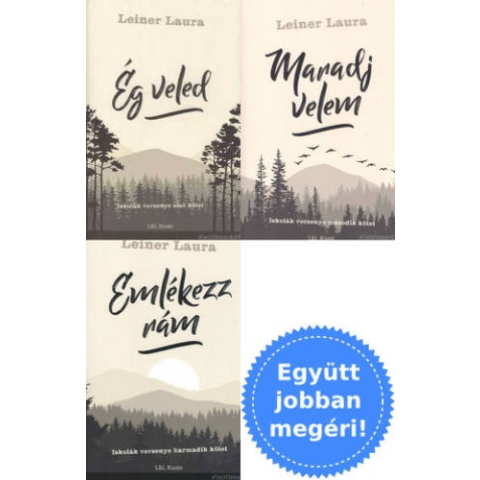 Több könyv egy helyről, fárasztó keresgélés nélkül!Továbbá így kevesebb az egy könyvre jutó szállítási költség.Ráadásul a könyvek egyesével megrendeléséhez képest így általában egy kötetre kevesebb kartoncsomagolás (és hulladék) jut. A csomag tartalma: Ég veled [Iskolák versenye 1. könyv, Leiner Laura], Maradj velem [Iskolák versenye 2. könyv, Leiner Laura], Emlékezz rám [Iskolák versenye 3. könyv, Leiner Laura] Oldalszám:1356 oldal