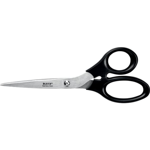 Papírvágó olló - éles heggyel, ergonomikus fogantyúval, jobb- és balkezesek számára egyaránt használható, műanyag markolattal, rozsdamentes acél anyagú pengével, 8 cm-es pengével, teljes hossza 20 cm, 140 g tömegű, szürke színben Rozsdamentes acél olló ergonomikus fogantyúval. Ideális minden gyakori papírvágási feladathoz otthon, az iskolában és az irodában. Műanyag tartalmú, műanyag akasztókártyán, műanyag tartalom nélkül. Fő