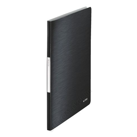 Bemutatómappa, 20 zsebes, A4, LEITZ Style, szaténfekete (E39580094) - kiváló minőségű PP iratvédő mappa egyedülálló, csiszolt fém mintázattal, kifinomult színekben - ideális dokumentumok prezentálásához, rendszerezéséhez - 20 áttetsző, a gerinchez rögz