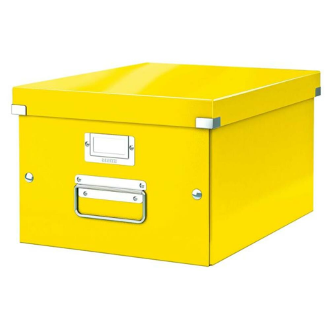 Doboz, A4 méret, LEITZ Click&Store, sárga (E60440016) - univerzális tároló- és szállítódoboz A4 méretben laminált felülettel és megerősített, fém sarokelemekkel a teljes védelem érdekében - a fém fogantyúknak köszönhetően könnyen szállítható - a címk
