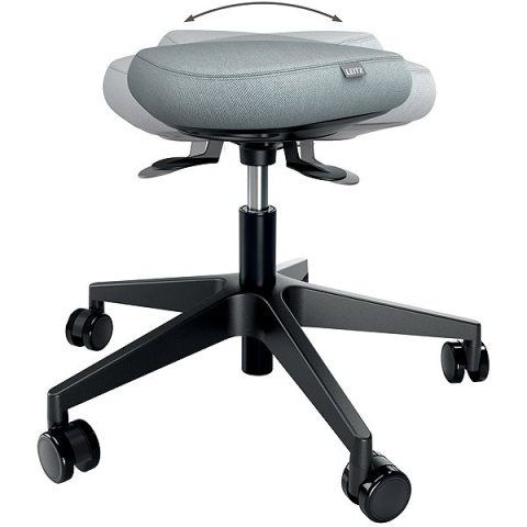 Labdaszék - 110 kg terhelhetőség, anatómiailag formázott ülés, ülésmagasság állítható, támasz nélkül, műanyag kerekek 6 cm átmérővel, fém konstrukció, textil huzat, műanyag lábak, szélessége 38 cm A Leitz Ergo egyensúlyozó szék kényelmes ülést biztosít, energiával tölt fel, és segít aktívnak maradni egész nap a munka során. Az ülőke háromszög alakú, természetesen igazodik a tested formájához, a