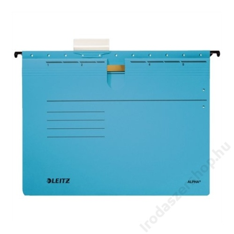Függőmappa, gyorsfűzős, karton, A4, LEITZ Alpha, kék (E19840035) - minőségi függőmappa gyorsfűzős szerkezettel lyukasztott dokumentumok számára - mindennapi használatra alkalmas - erős és tartós fém fülek - a nagy méretű, erős, műanyag címketartóra ak
