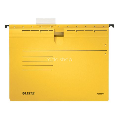 Függőmappa, gyorsfűzős, karton, A4, LEITZ Alpha, sárga - minőségi függőmappa gyorsfűzős szerkezettel lyukasztott dokumentumok számára - mindennapi használatra alkalmas - erős és tartós fém fülek - a nagy méretű, erős, műanyag címketartóra akár 4 sorba