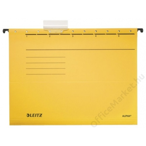 Függőmappa, karton, A4, LEITZ Alpha Standard, sárga (E19850015) - minőségi függőmappa V-alakú gerinccel és nyitott oldalakkal a különálló dokumentumok számára - mindennapi használatra alkalmas - lyukak az elő-és hátlapon lefűzőcsík rögzítéséhez - ragyo