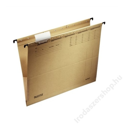 Függőmappa, oldalvédelemmel, karton, A4, LEITZ Alpha, natúr (E19160000) - minőségi függőmappa V-alakú, oldalt zárt kialakítással, mely megóvja a függőmappa tartalmát a kieséstől - lyukak az elő-és hátlapon lefűzőcsík rögzítéséhez - 100%-ban újrahasznos