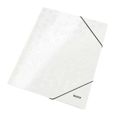 Gumis mappa, 15 mm, karton, A4, lakkfényű, Leitz Wow, fehér - szembetűnő 3-pólyás mappa ragyogó színekben - a laminált felület fényes, kiváló minőségű megjelenést kölcsönöz - a pólyák megakadályozzák a lapok kicsúszását - gumiszalagos záródás a dokumen