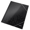 Gumis mappa, 15 mm, karton, A4, LEITZ Wow, fekete (E39820095) - szembetűnő 3-pólyás mappa ragyogó színekben - a laminált felület fényes, kiváló minőségű megjelenést kölcsönöz - a pólyák megakadályozzák a lapok kicsúszását - gumiszalagos záródás a do