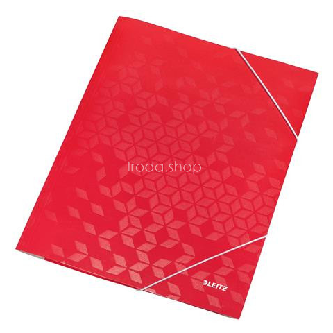 Gumis mappa, 15 mm, karton, A4, LEITZ Wow, piros - szembetűnő 3-pólyás mappa ragyogó színekben - a laminált felület fényes, kiváló minőségű megjelenést kölcsönöz - a pólyák megakadályozzák a lapok kicsúszását - gumiszalagos záródás a dokumentumok bi