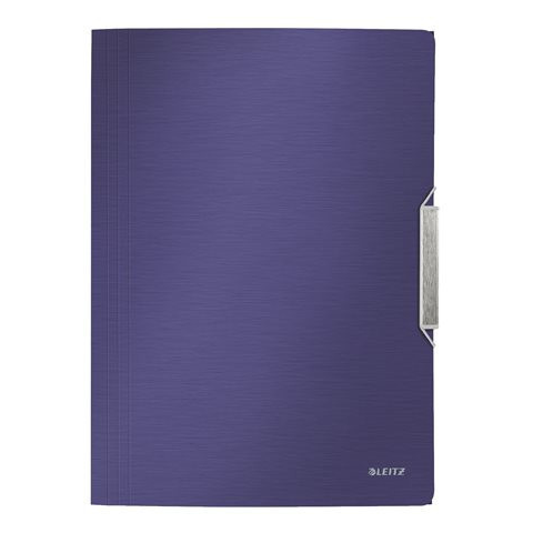 Gumis mappa, PP, A4, LEITZ Style, titánkék - kiváló minőségű, PP, 3-pólyás mappa egyedülálló, csiszolt fém mintázattal, kifinomult színekben - ideális a dokumentumok és különálló lapok mindennapos rendszerezéséhez - tetszetős gumiszalagos záródás a dok
