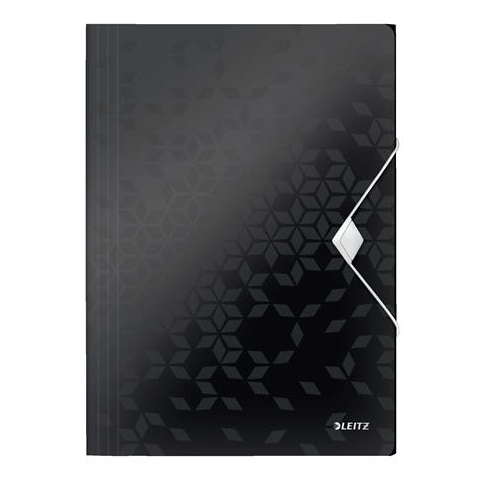 Gumis mappa, PP, A4, LEITZ Wow, fekete - kiváló minőségű PP 3-pólyás mappa ragyogó WOW színekben - ideális a dokumentumok és különálló lapok mindennapos rendszerezéséhez - tetszetős gumiszalagos záródás a dokumentumok biztonságos szállításához - ill