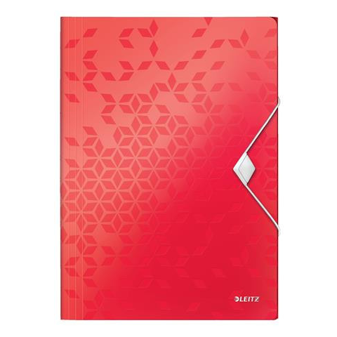 Gumis mappa, PP, A4, LEITZ Wow, piros - kiváló minőségű PP 3-pólyás mappa ragyogó WOW színekben - ideális a dokumentumok és különálló lapok mindennapos rendszerezéséhez - tetszetős gumiszalagos záródás a dokumentumok biztonságos szállításához - illi