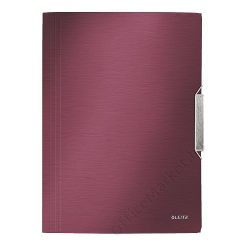 Gumis mappa, PP, A4, LEITZ Style, gránátvörös (E39770028) - kiváló minőségű, PP, 3-pólyás mappa egyedülálló, csiszolt fém mintázattal, kifinomult színekben - ideális a dokumentumok és különálló lapok mindennapos rendszerezéséhez - tetszetős gumiszalago