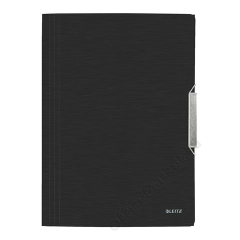 Gumis mappa, PP, A4, LEITZ Style, szaténfekete (E39770094) - kiváló minőségű, PP, 3-pólyás mappa egyedülálló, csiszolt fém mintázattal, kifinomult színekben - ideális a dokumentumok és különálló lapok mindennapos rendszerezéséhez - tetszetős gumiszalag