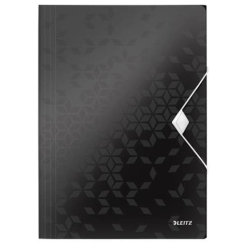 Gumis mappa, PP, A4, LEITZ Wow, fekete (E45990095) - kiváló minőségű PP 3-pólyás mappa ragyogó WOW színekben - ideális a dokumentumok és különálló lapok mindennapos rendszerezéséhez - tetszetős gumiszalagos záródás a dokumentumok biztonságos szállítá