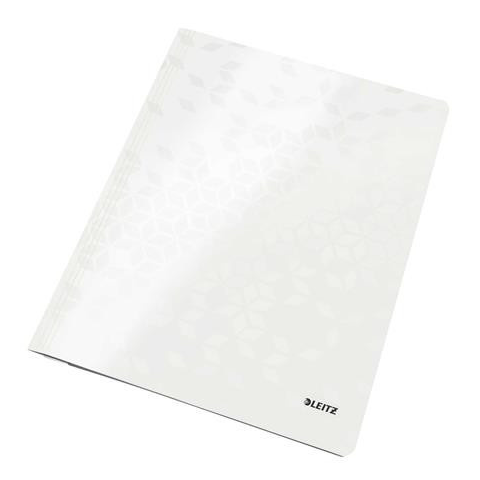 Gyorsfűző, laminált karton, A4, LEITZ Wow, fehér - feltűnő megjelenésű gyorslefűző ragyogó színekben - a laminált felület fényes, kiváló minőségű megjelenést kölcsönöz - a leszorító szerkezet megfogja és rögzíti a lyukasztott lapokat - gyors rendsze