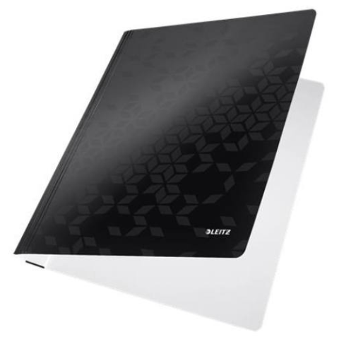 Gyorsfűző, laminált karton, A4, LEITZ Wow, fekete (E30010095) - feltűnő megjelenésű gyorslefűző ragyogó színekben - a laminált felület fényes, kiváló minőségű megjelenést kölcsönöz - a leszorító szerkezet megfogja és rögzíti a lyukasztott lapokat -
