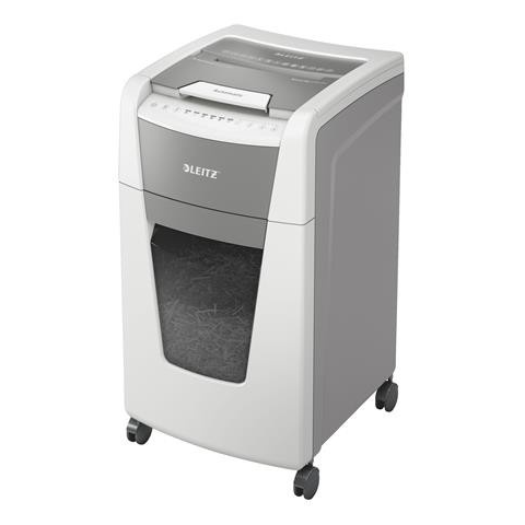 Iratmegsemmisítő, konfetti, 300 lap, LEITZ IQ AutoFeed Office 300 P4 Pro (E80150000) Teljesen automata Leitz iratmegsemmisítő egyedülálló, tiszta ürítést biztosító funkcióval. -automata adagolás egyszerre max. 300 A4 lap -kézi adagoló nyílás - max. 1