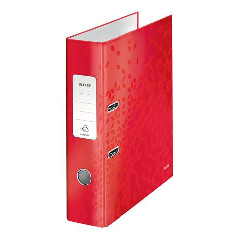 A Iratrendező, 80 mm, A4, karton, LEITZ 180 Wow, piros (E10050026) - szembetűnő iratrendező új, vibráló színekben, kettős színhatással - a laminált felület fényes, kiváló minőségű megjelenést kölcsönöz - egyedülálló, szabadalmaztatott 180°-ban nyíló sze