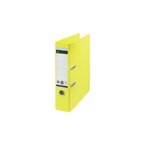 Iratrendező, 80 mm, A4, karton, újrahasznosított, LEITZ "180 Recycle", sárga - E10180015 - Iratrendezők, karton külső, karton belső, 70-80 mm gerinc - Attraktív, prémium minőségű, újrahasznosított anyagokból készült emelőkaros iratrendező, amely a teljes