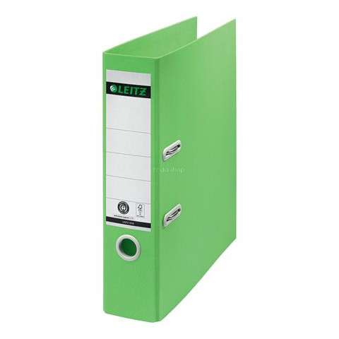 Iratrendező, 80 mm, A4, karton, újrahasznosított, LEITZ 180 Recycle, zöld Attraktív, prémium minőségű, újrahasznosított anyagokból készült emelőkaros iratrendező, amely a teljes újrahasznosítás érdekében szétszerelhető -100%-ban újrahasznosított karton