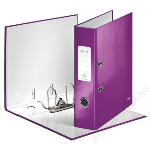 Iratrendező, 80 mm, A4, karton, LEITZ 180 Wow, lila (E10050062) - szembetűnő iratrendező új, vibráló színekben, kettős színhatással - a laminált felület fényes, kiváló minőségű megjelenést kölcsönöz - egyedülálló, szabadalmaztatott 180°-ban nyíló sze