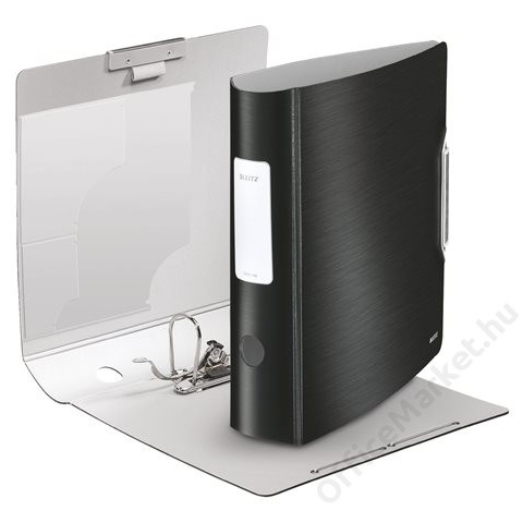 Iratrendező, 82 mm, A4, PP, LEITZ 180 Active Style, szaténfekete (E11080094) - innovatív iratrendező egyedülálló, csiszolt fém mintázattal, kifinomult színekben - könnyű alapanyag és ergonómikus formatervezés a dokumentumok egyszerű kezelése érdekében