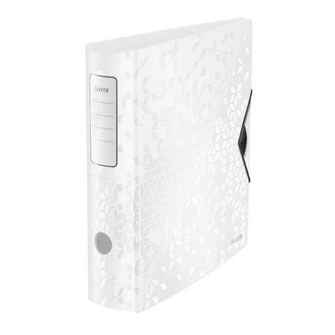 Iratrendező, 82 mm, A4, PP, LEITZ 180 Active Wow, fehér - innovatív iratrendező vibráló WOW színekben fényes, laminált felülettel - könnyű alapanyag és ergonómikus formatervezés a dokumentumok egyszerű kezelése érdekében az irodában és irodán kívül -