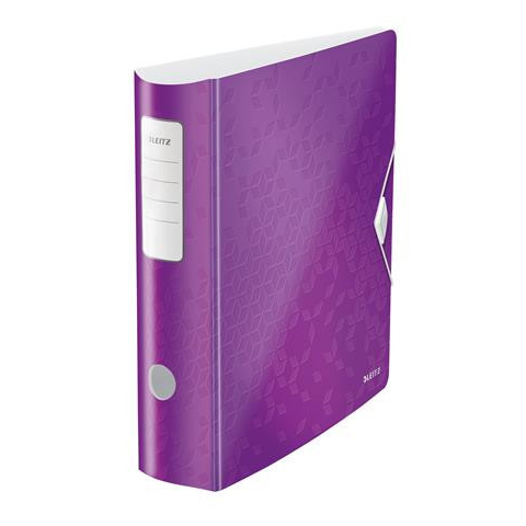 Iratrendező, 82 mm, A4, PP, LEITZ 180 Active Wow, lila - innovatív iratrendező vibráló WOW színekben fényes, laminált felülettel - könnyű alapanyag és ergonómikus formatervezés a dokumentumok egyszerű kezelése érdekében az irodában és irodán kívül -