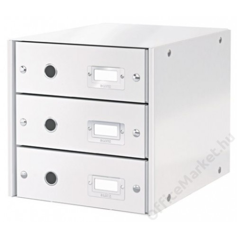 Irattároló, laminált karton, 3 fiókos, LEITZ Click&Store, fehér (E60480001) - fiókos irattároló 3 fiókkal, A4 méretű lapok tárolására - összehajtható, így helytakarékosan tárolható - fém kihúzólyuk a fiókok könnyű használatának érdekében - címketart